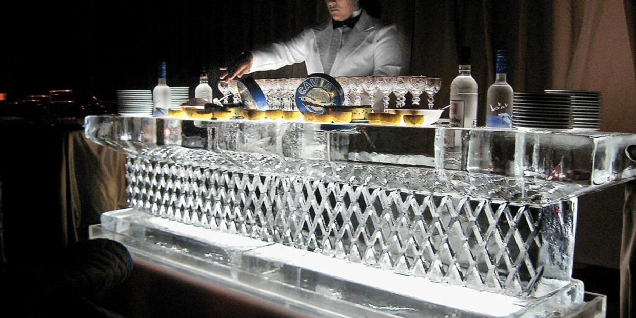 MİAMİ CASINO PARTY carve 300-pound blocks of crystal-clear ice into elegant swans, flowing martini luges, and striking branded centerpieces.